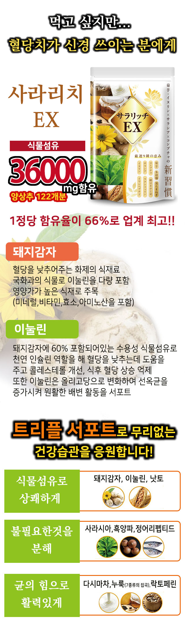 이눌린 36,000mg 고배합 → 양상추 122개 분량의 식이섬유