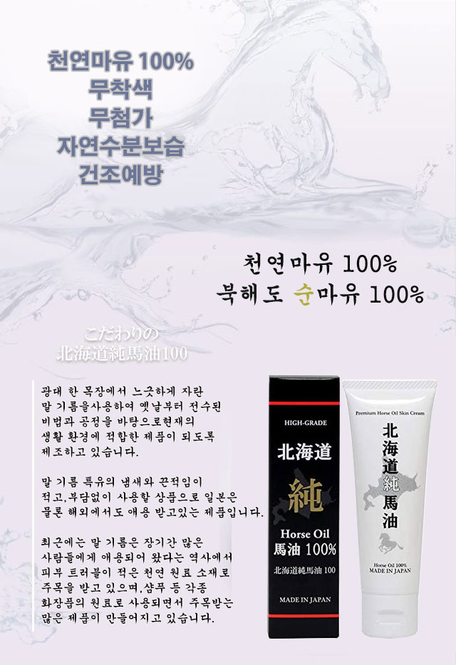 인간의 피지성분과 가장가까운 말기름으로 천연피지막으로 피부를 보습해주고 건조로부터 피부를 보호하고 매끈한 피부로 가꾸어 줍니다.