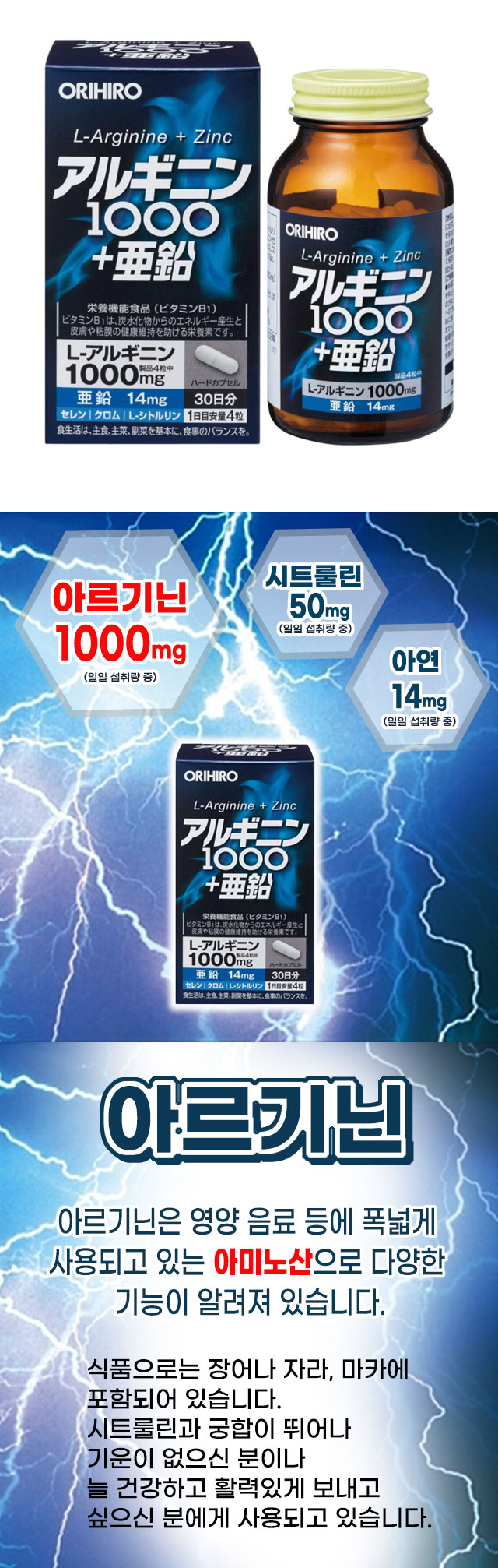 ● 아르기닌 파워 실감! 아르기닌 1000mg 함유