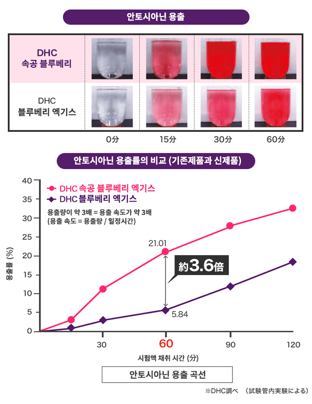 하루 섭취 기준량당 블루베리 약 540알 상당의 안토시아닌을 섭취할 수 있습니다.