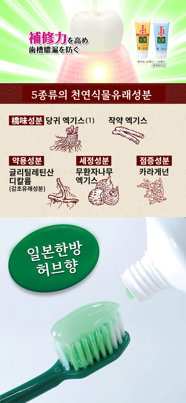 “잇몸 붓기·출혈 케어! 허브 민트 생엽 치약”