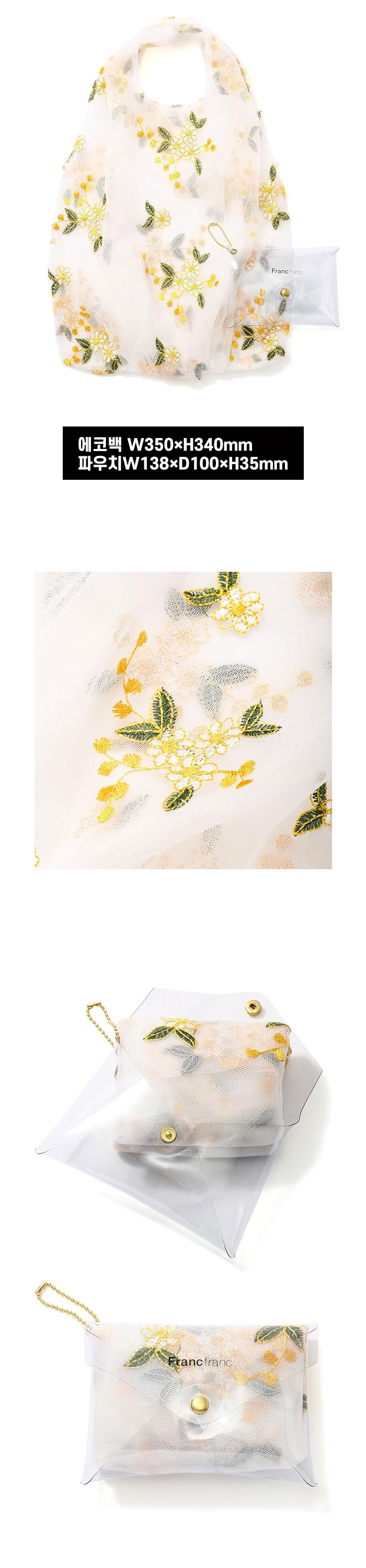 Francfranc 프랑프랑 튤모양 접이식 에코백 (수납 파우치 포함)옐로우화이트