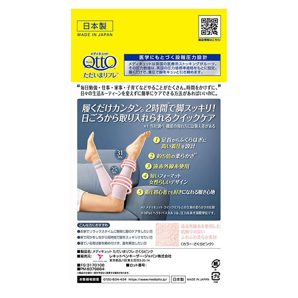 MediQtto 지금 빠르게 리프레시 메디큐토 짧은 프리사이즈 압박 가압 사쿠라핑크