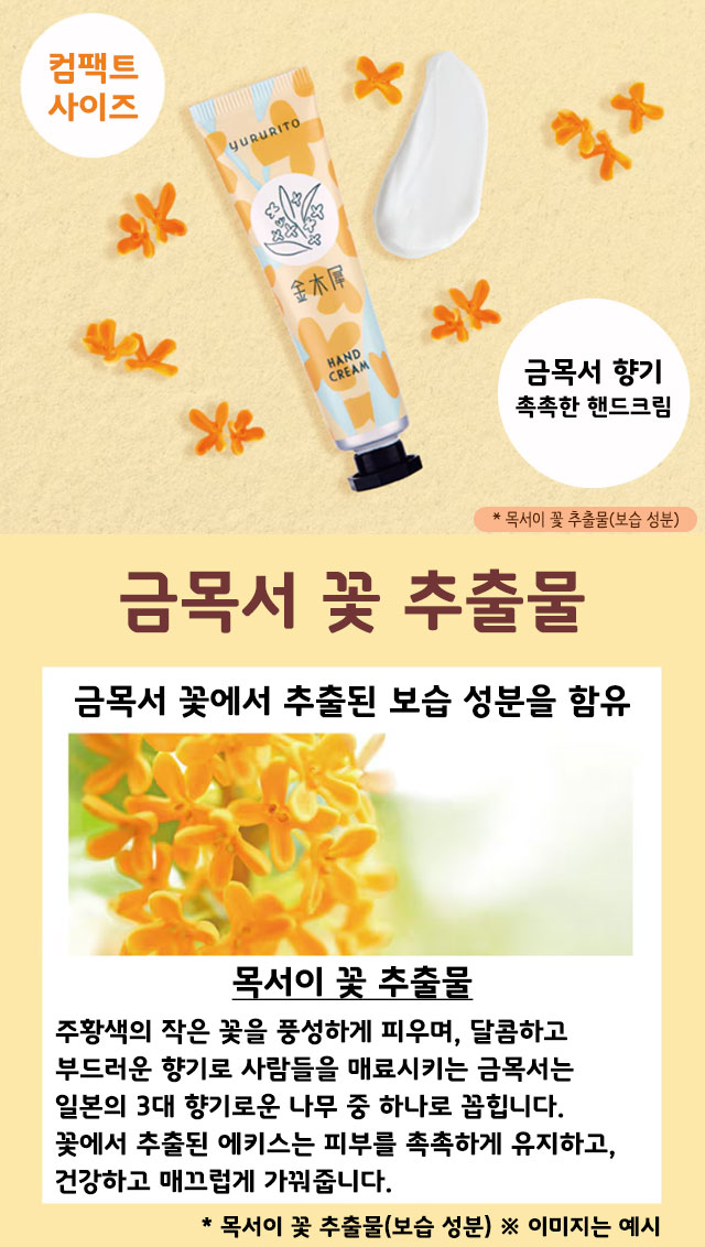 보습 성분 함유 – 금목서 꽃 추출물과 식물성 오일이 손끝까지 촉촉하게 케어