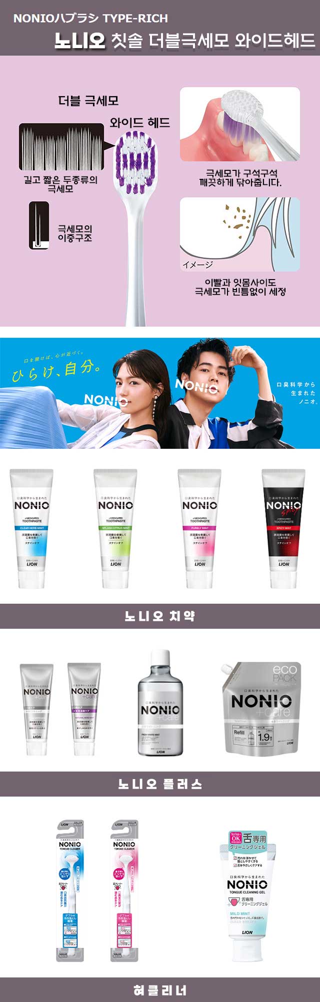 NONIO 노니오 칫솔 TYPE-RICH 더블극세모 와이드헤드 보통모 X6개 세트 색상랜덤