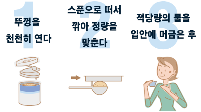 3. 적당량의 물을 입안에 머금은 후,분말을 입 안에 넣습니다.