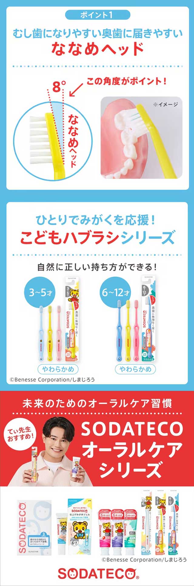 선스타 소다테코 어린이 칫솔 3-5세용 부드러운모 [유아용 칫솔]X3개세트