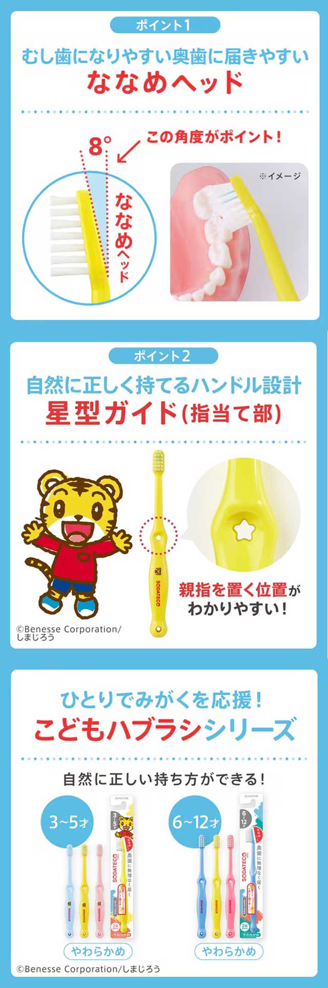 선스타 소다테코 어린이 칫솔 6-12세용 부드러운모 [어린이용 칫솔]X3개세트