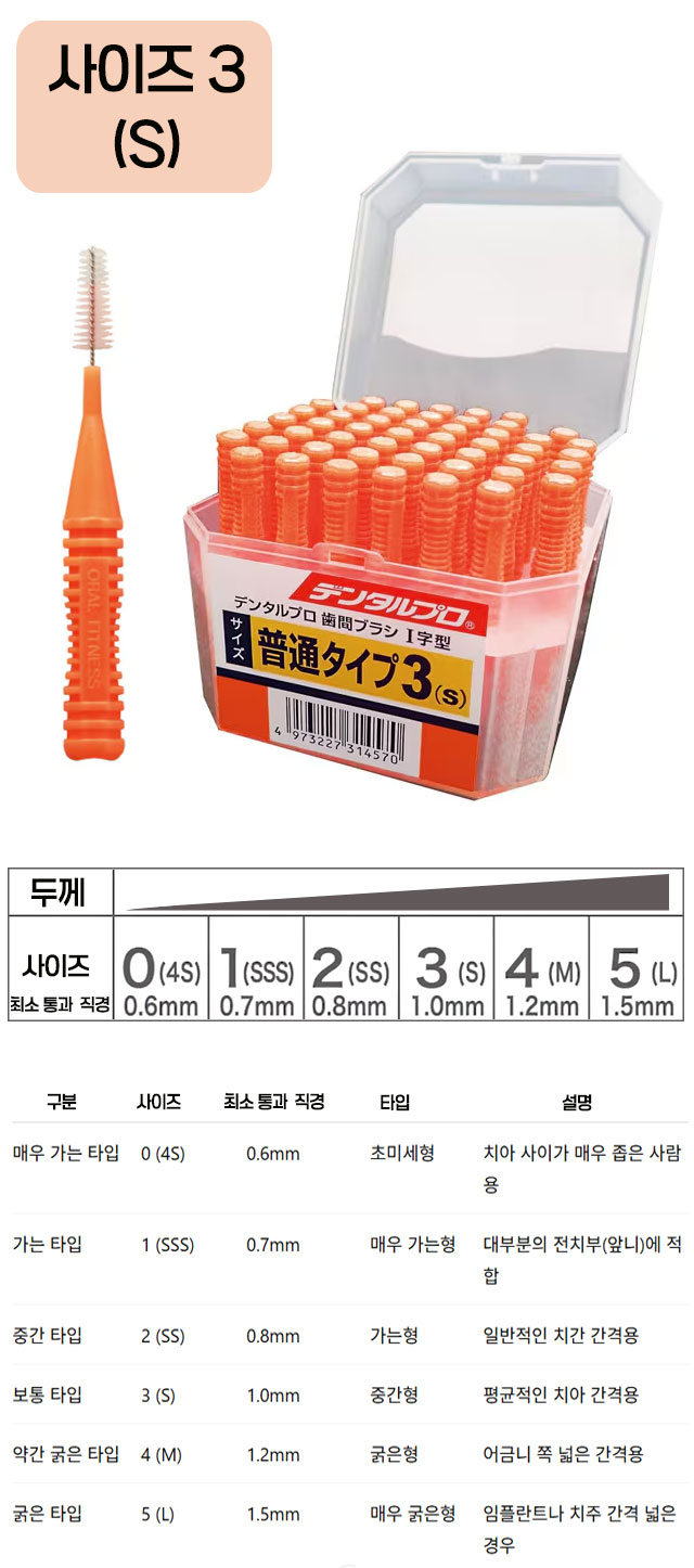 덴탈프로 치간칫솔 I자형 사이즈3(S)50개입