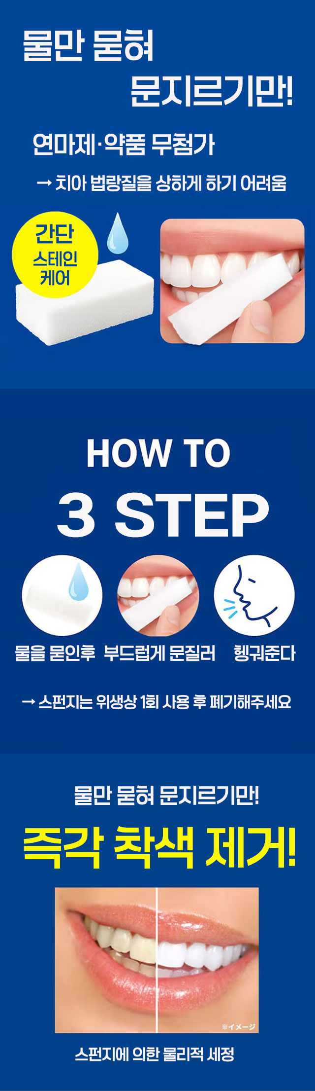 일반 칫솔모나 스펀지보다 훨씬 미세해 착색을 효과적으로 직접 제거합니다.