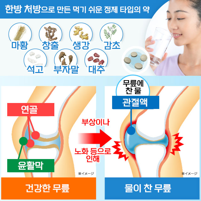 관절에 물이 차는 느낌(관절 부종) · 관절 통증 · 몸의 부종 개선에