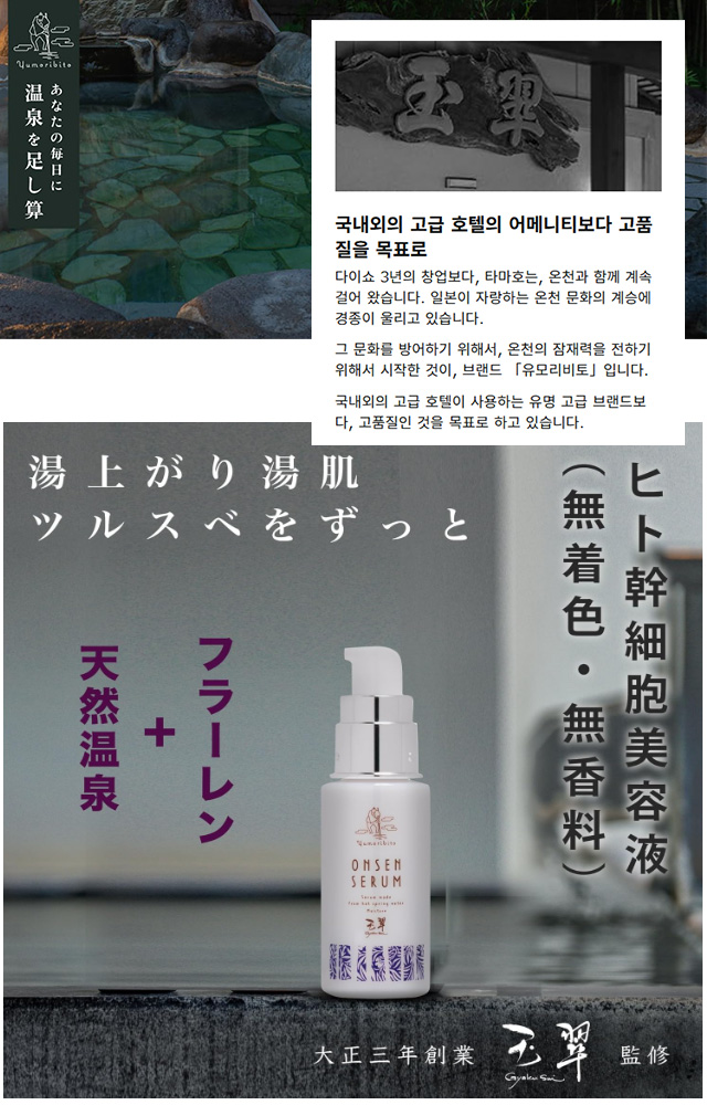 일본 전통 온천과 첨단 과학을 결합한 프리미엄 안티에이징 세럼.