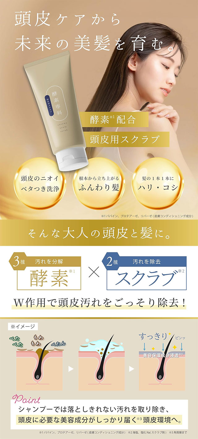 3종 효소 + 2종 스크럽의 더블 작용으로 샴푸만으로는