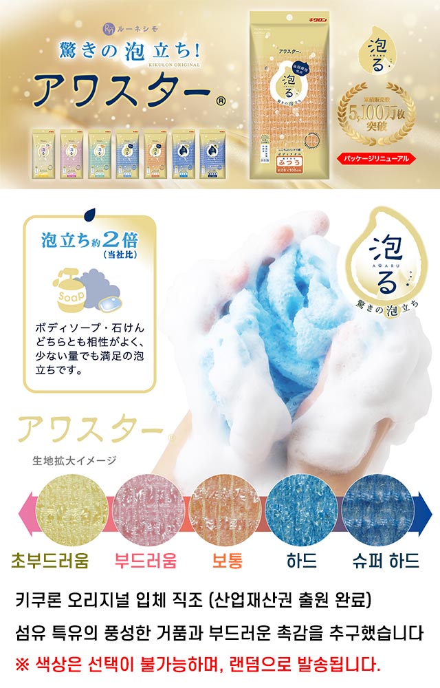일본 키쿠론 아와스타 바디타월  (보통 타입) 샤워타올 목욕타월