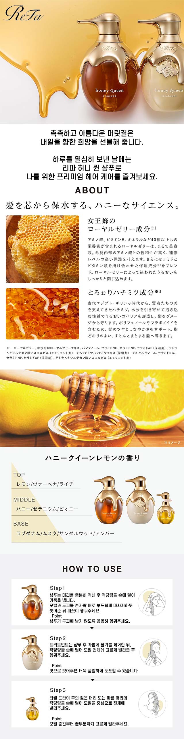 로열젤리와 꿀 성분을 담아 손상된 모발에 깊은 보습과 윤기를 선사하는 아웃바스 트리트먼트입니다.