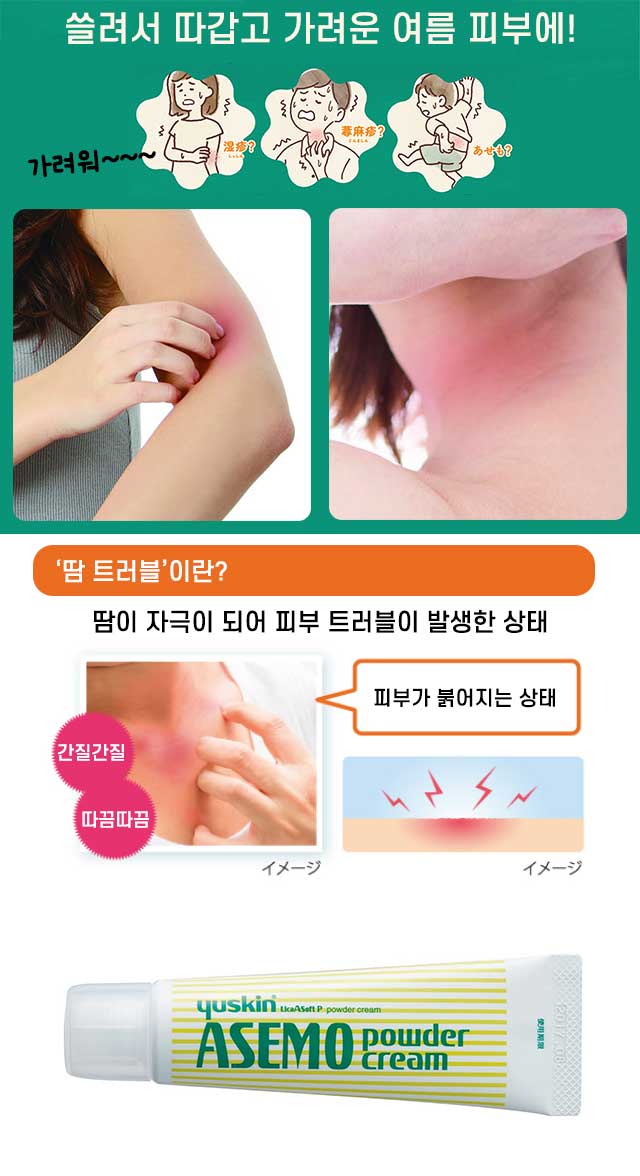 여름철 땀띠, 가려움, 피부 자극 등에 사용 가능한 외용 일반의약품 파우더 크림입니다. 산뜻하게 발리는 크림 타입에 파우더 성분이 더해져 끈적임 없이 보송하게 피부를 케어해줍니다. 🔹 상세 정보 ・내용량: 32g ・품목명: 제3류 의약품 (외용 피부질환용제) ・패키지 크기: 약 13 x 3.5 x 2.9 cm ・원산지: 일본