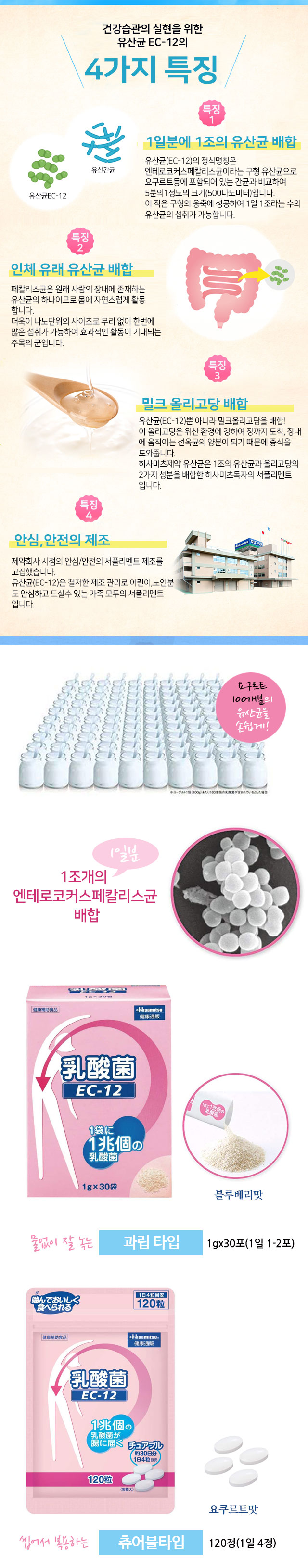 - home > 건강보조식품 > 면역/유산균/장건강 > 히사미츠 유산균 EC-12 1조유산균 츄어블120정 엔테로코커스페칼리스균 인체유산균 밀크올리고당