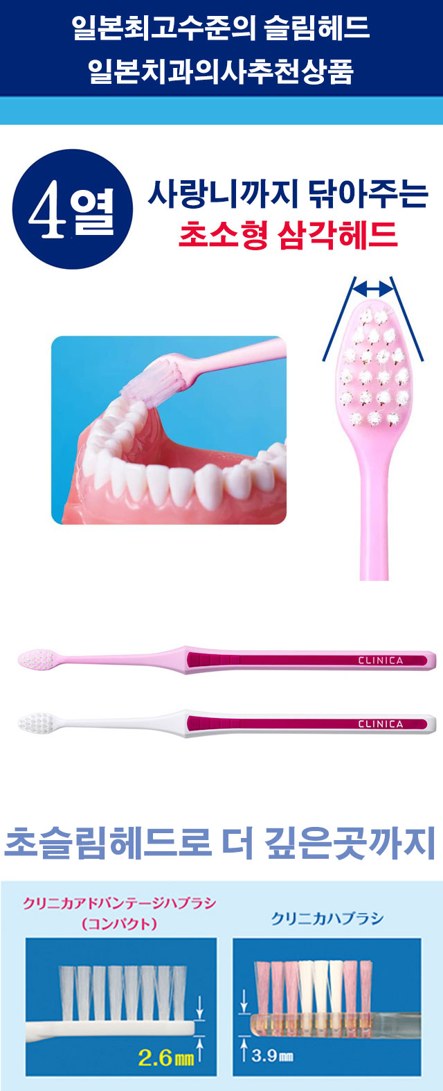 > 클리니카 어드밴테이지 칫솔 초컴팩트 4열 보통 3개 세트 색깔랜덤