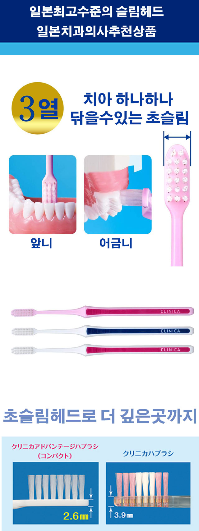 > 클리니카 어드밴테이지 칫솔 3열 초컴팩트 보통 3개 세트 색깔랜덤