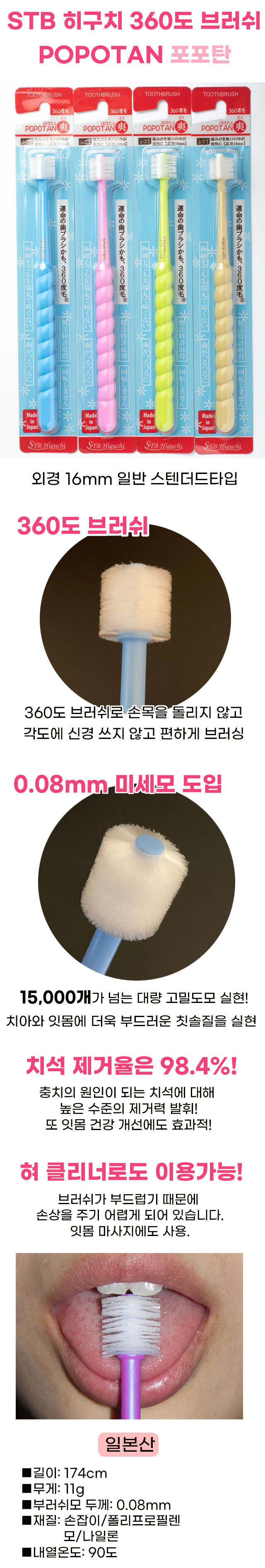 > STB히구치 360도칫솔 POPOTAN포포탄 10개세트 선택 색깔렌덤