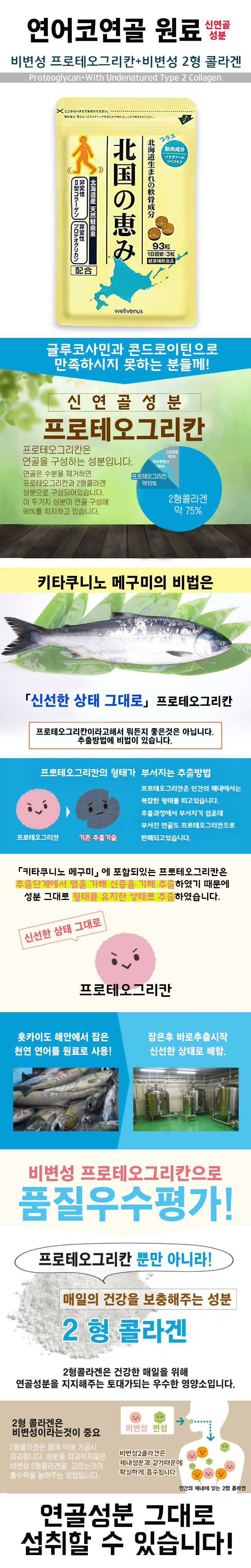 제품 특징 관절·연골 건강 지원연골 구성 성분인 2형 콜라겐과 프로테오글리칸, 그리고 히알루론산을 배합하여 무릎 및 관절의 유연성을 서포트합니다.