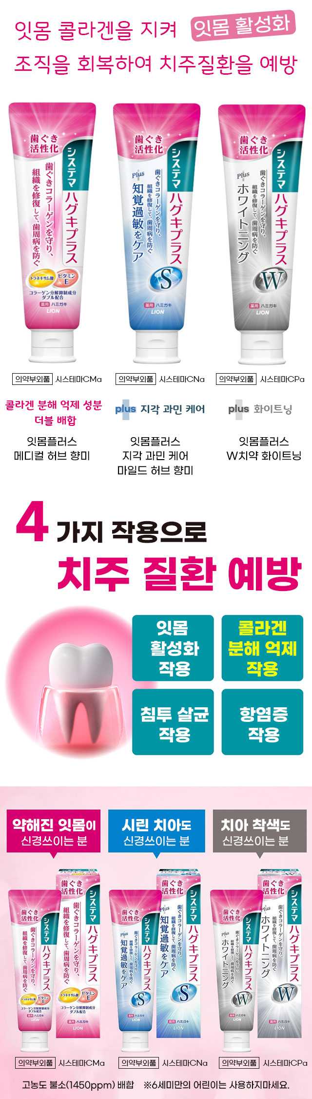 ◆4가지 작용으로 치주질환 예방 ·잇몸활성화작용(조직복구성분 더블함유 알란토인,비타민E)잇몸세포를 활성화하여 조직을 복구