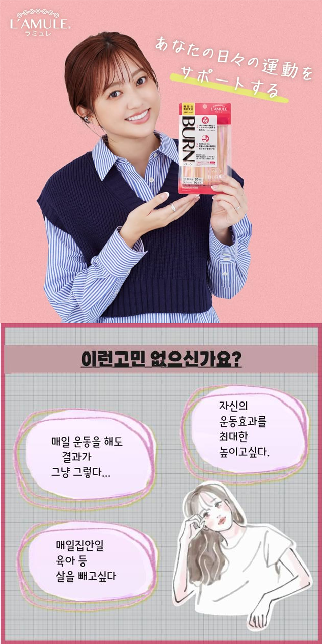 〇성분/함량환원맥아당(일본국내제조), 칡꽃추출물, 유포자성유산균말, 흑생강추출물, 히하츠추출물, 가르시니아캄보디아추출물, 녹차추출물, 풋고추발효추출물, 파파야추출물, 흑후추출물 , 살균비피더스균말 , 낙산균말(유성분·콩포함)/셀룰로스 , 스테알린산Ca , 나이아신 , 이산화규소 , 판토텐산Ca , V.B6 , V.B2