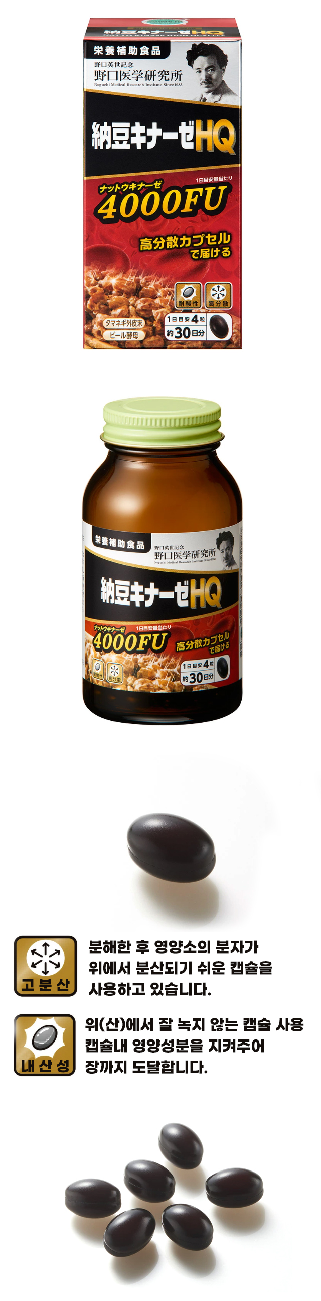 일본의 전통 식품인 '낫토'의 끈적함에 포함된 '낫토키나아제'라는 효소가 최근 건강 의식이 높은 분들에게 주목받고 있습니다. 낫토 키나제를 1일 3알당 4,000 FU(제조시) 게다가 양파 외피말, 맥주 효모를 배합했습니다. 낫토를 싫어하는 분들에게도 추천하는 캡슐 타입의 보충제입니다.