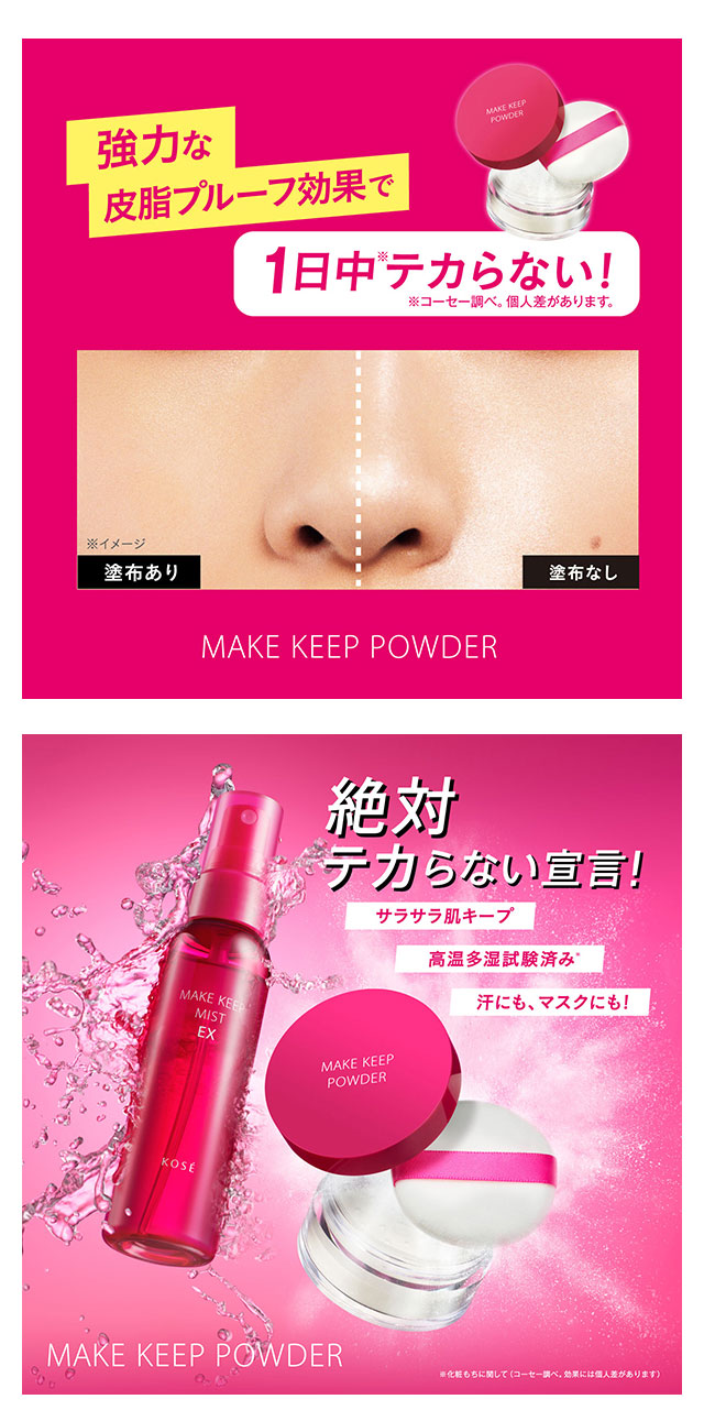 놀라운 번들거림 방지 파우더 메이크업 마무리에 바르기만 하면, 놀라운 번들거림 방지 효과!갓 메이크업한 듯한 보송보송한 피부를 유지해주는 파우더. 특징 무향료: 번들거림 방지 효과와 메이크업 마무리 후에도 오래 지속되는 멀티프루프 효과.고온다습 환경 테스트 완료(자사 조사. 효과는 개인차가 있을 수 있습니다).피지 번들거림 방지 성분 함유: 더운 환경에서도 번들거림을 막아주고 보송한 피부를 유지.워터프루프, 피지 프루프, 마스크에 묻어남 방지.오일 컨트롤 성분 및 코팅 성분: 가볍게 발리며 백탁 현상 없이 자연스러운 마무리.저자극 포뮬라: 여드름 유발 가능성을 줄인 처방(모든 피부에 여드름이 생기지 않는다는 보장은 아님).무기유 및 합성 계면활성제 무첨가. 알레르기 테스트 완료(모든 사람에게 알레르기가 발생하지 않는다는 보장은 아님). 사용 방법 처음 사용할 때는 내부 뚜껑의 스티커를 제거하세요.베이스 메이크업 후 마무리 단계나 화장을 고칠 때 사용하세요.파프(퍼프)를 내부 뚜껑에 대고 용기를 뒤집어 파우더를 묻힙니다.손등에 가볍게 두드려 양을 조절한 후, 피부에 원을 그리며 가볍게 펴 발라주세요. 주의사항 퍼프가 더러워지면 파우더의 발림성 및 밀착력이 떨어지고, 퍼프가 손상될 수 있습니다. 항상 깨끗하게 관리하세요.더러워진 퍼프는 미지근한 물에 중성세제를 희석해 부드럽게 눌러 세탁한 뒤, 충분히 헹구고 그늘에서 완전히 건조시켜주세요.제품 특성상 가루가 새어나올 수 있습니다.