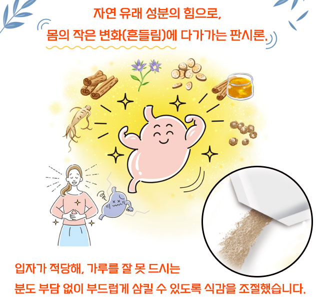 ✔ 포인트 3 4종의 생약 성분 + L-글루타민이 약해진 위 기능을 회복하고