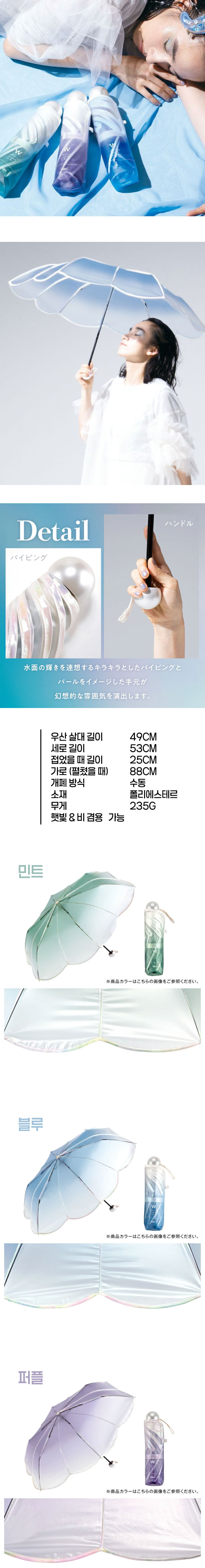 > WPC 접이식 우산 비닐 우산 머메이드 엄브렐라 미니 49cm 수동식 민트 PT-0072-002MT