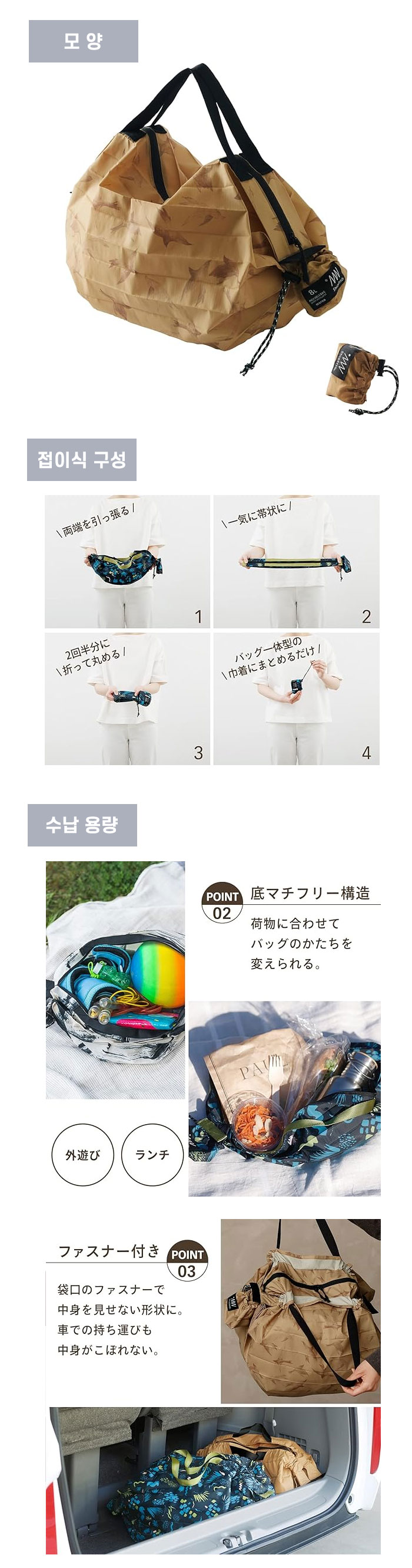 > Shupatto 마나 패커블백 지퍼형 슈파토 아웃도어 백 8L 플라잉버드발수 원단 사용