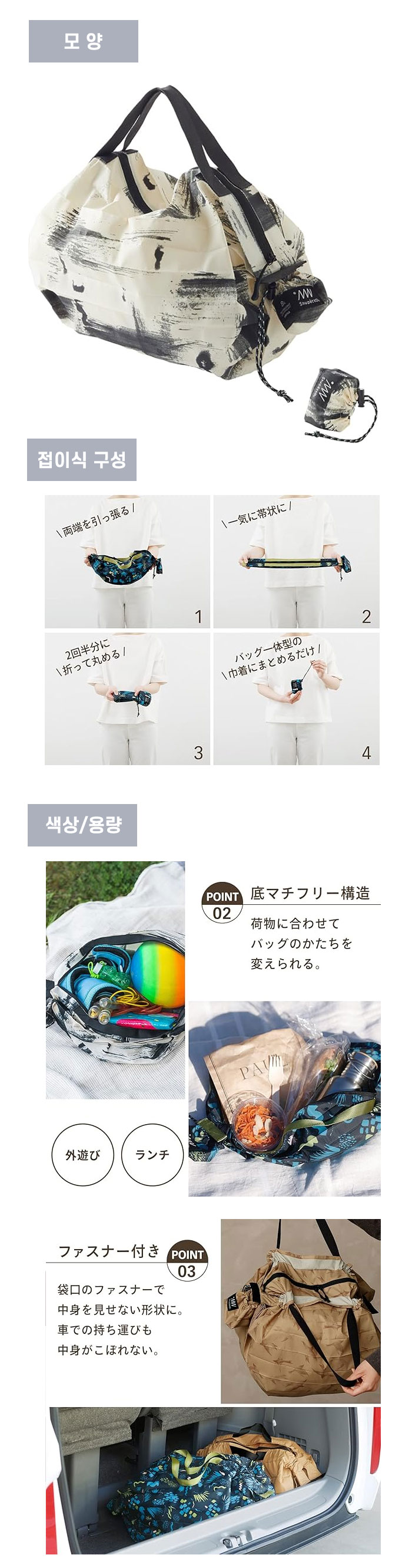 > Shupatto 마나 패커블백 지퍼형 슈파토 아웃도어 백 8L 하얀 자작나무 발수 원단 사용