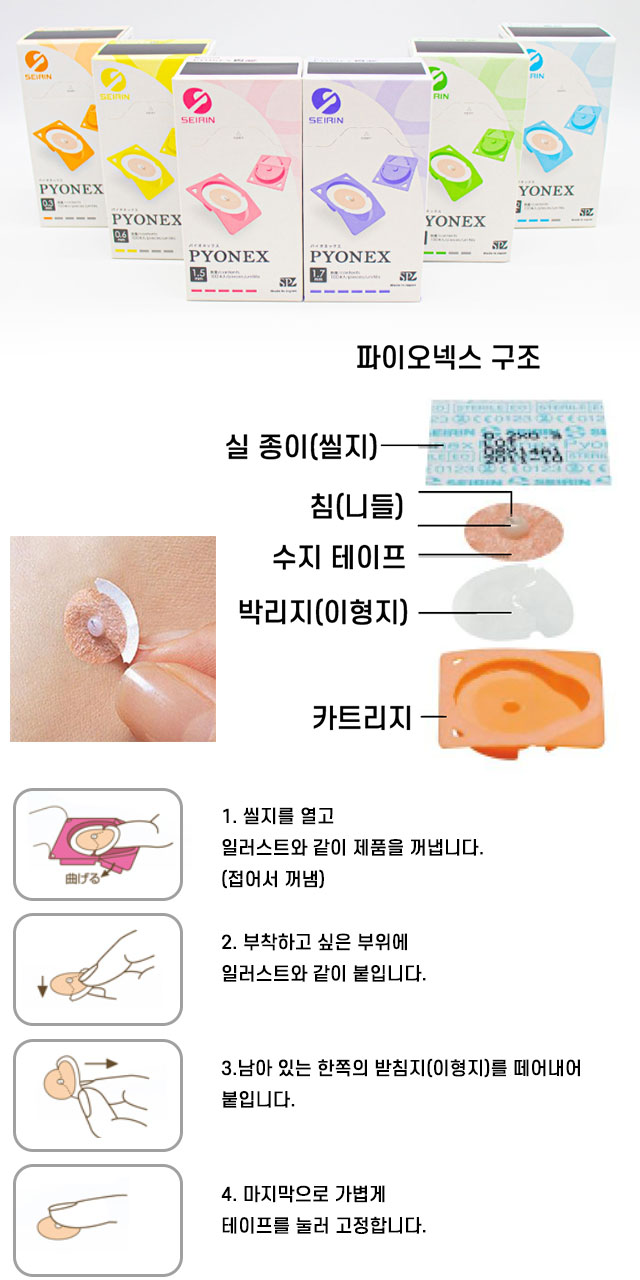 일본 브랜드의 사용하기 쉬운 원피침 🔹 테이프 한 장에 침을 수지(레진)로 고정 피부에 빈틈없이 밀착되어 쉽게 떨어지지 않는 구조입니다.