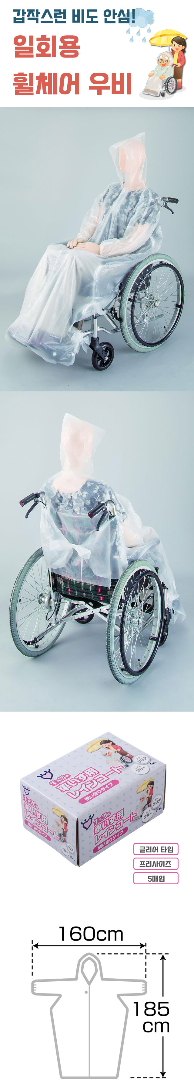 외출시 휴대가 편리한 일회용 타입 휠체어레인코트