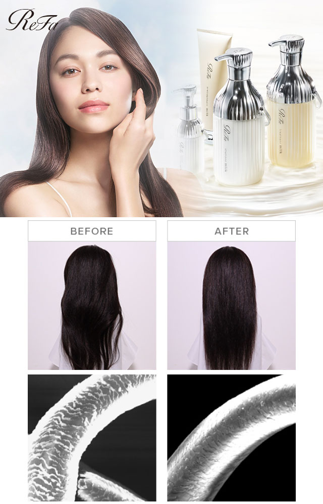 ReFa 리파 밀크 프로틴 샴푸 & 트리트먼트 머리카락의 80%는 단백질 매일의 손상으로 잃어버린 것도 바로 단백질입니다. ✅ 제품 특징 밀크 프로틴 & 실크 케어 → 모발에 영양을 공급하고 부드러운 윤기 모발로 케어 아미노산 & 단백질 복합 성분 → 모발 손상을 집중 보수, 탄력 있는 건강한 머릿결 완성 펄(진주) 추출물 + 시어버터 → 수분 보습과 윤기 강화 화이트 플로럴 머스크 향으로 은은하고 고급스러운 마무리 ✅ 리파 밀크 프로테인 트리트먼트 (화이트) 속까지 꽉 채우는 단백질 보충 & 겉 표면까지 3D 보수 공허화된 모발을 내부부터 탄탄하게 케어 모발 끝까지 묵직하고 매끄러운 터치감