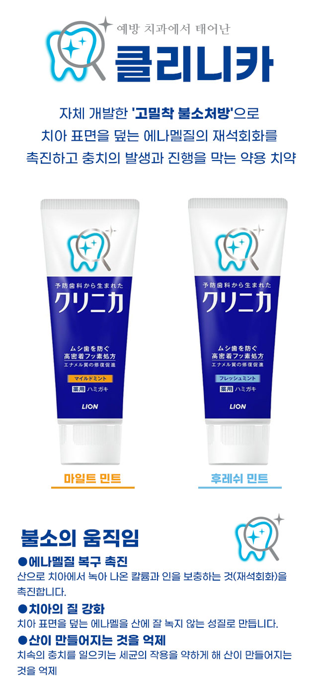 |    ✅제품특징 ①불소가 오래 머무는 독자적인 '고밀착 불소처방'에나멜의 복구를 촉진하고 충치의 발생과 진행을 막아줍니다.
