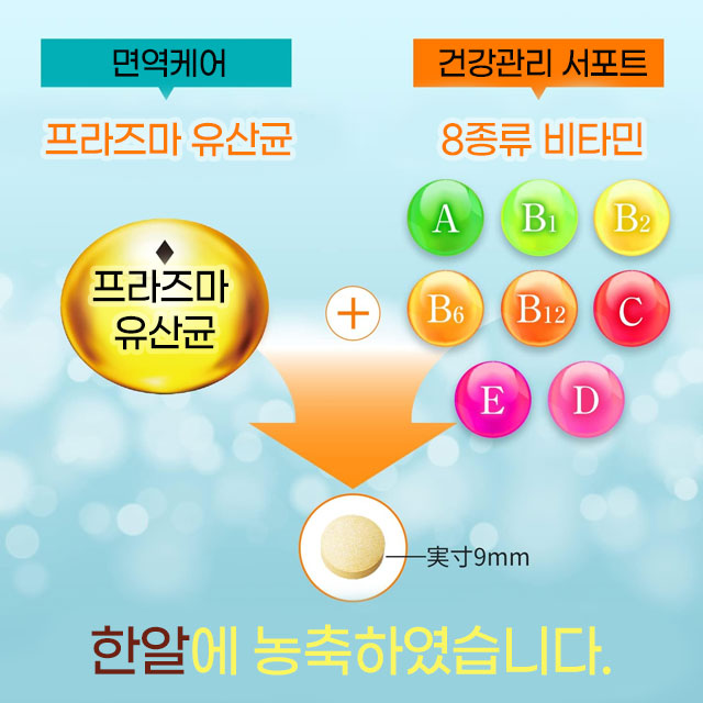 플라즈마 유산균 1,000억 개 + 8종 멀티비타민의 건강 시너지로 매일의 활력을 지켜주세요 !