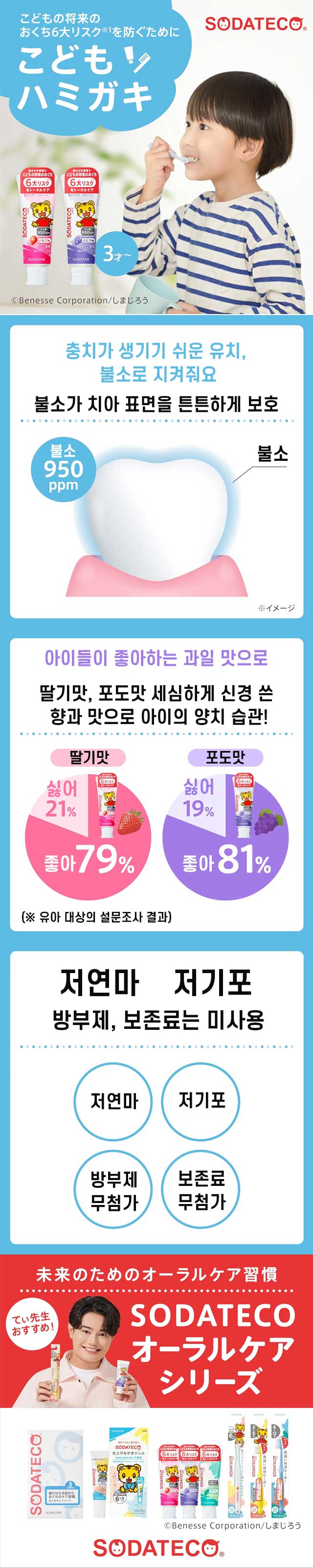선스타 소다테코 어린이 치약 딸기맛 70g [의약외품 불소950ppm 함유 유아용]X3개세트