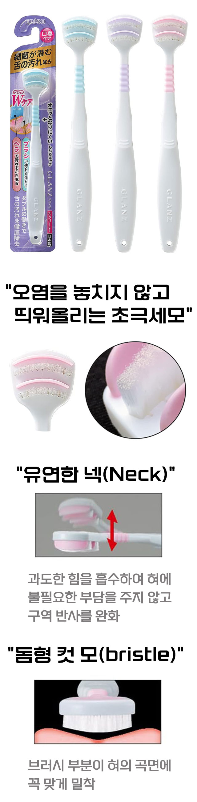 🦷 에비스 EBiSU 그란츠 혀클리너 입 냄새의 원인, 혀의 세균까지 깨끗하게 제거! 부드러운 브러시 + 라버 조합으로 자극 없이 강력 세정 입 냄새·혀태·세균 제거에 효과적 위생적인 일본 정품 오랄케어 브랜드 EBiSU의 기술력