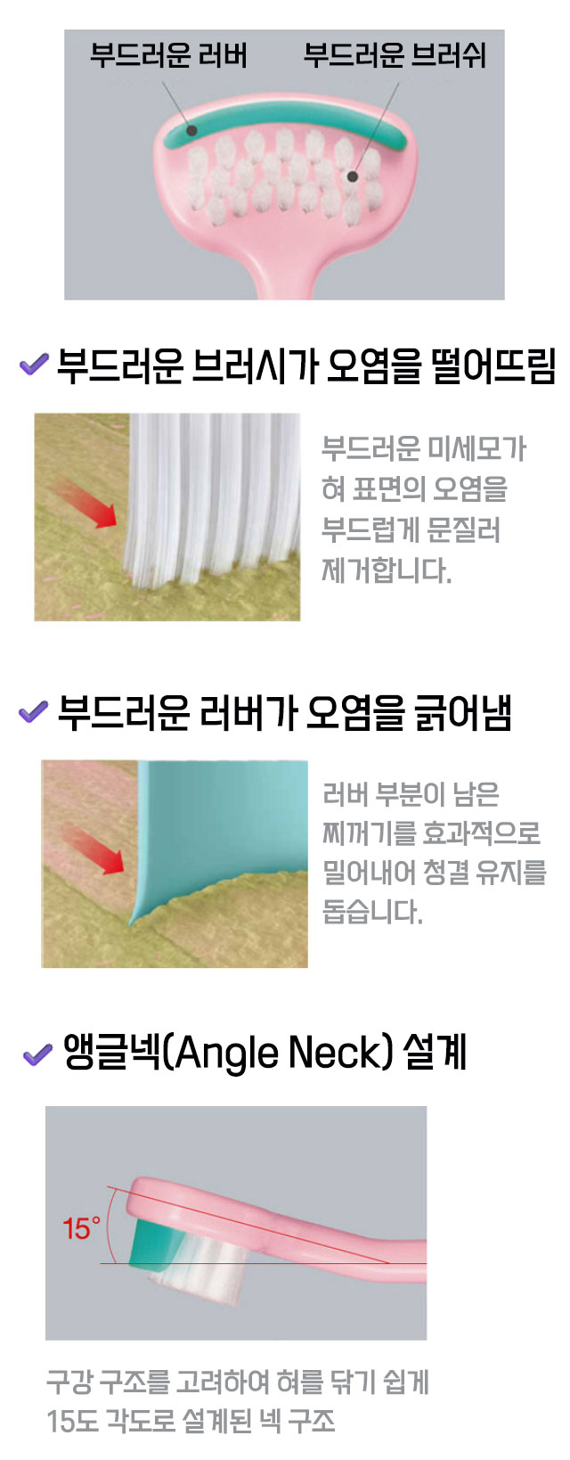 ● 입 냄새의 원인이 되는 혀의 오염을 집중 케어! ● 치과 및 요양 현장의 의견을 반영한 설계 ● 미끄럼 방지 그립 디자인 ● 항균 모사용 필라멘트 채용