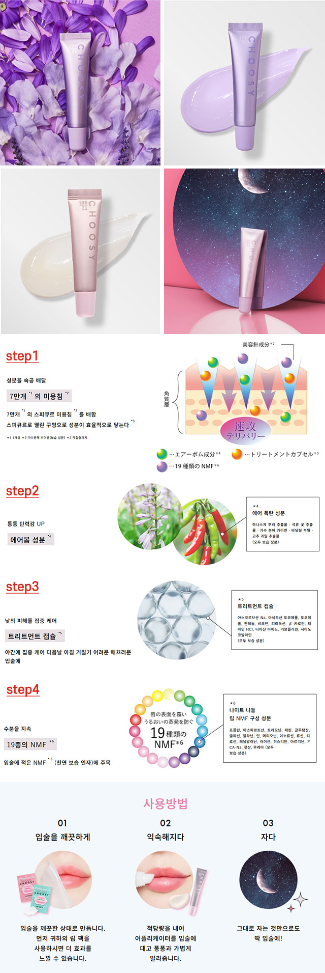 입술에 상처·이상(습진 등)이 있을 경우 사용하지 말 것 사용 중 붉어짐, 가려움, 자극 등 이상이 나타나면 즉시 사용 중지 직사광선·고온을 피하여 보관 유아·인지능력이 낮은 분의 오사용에 주의 사용 후 캡을 꼭 닫아 보관 |