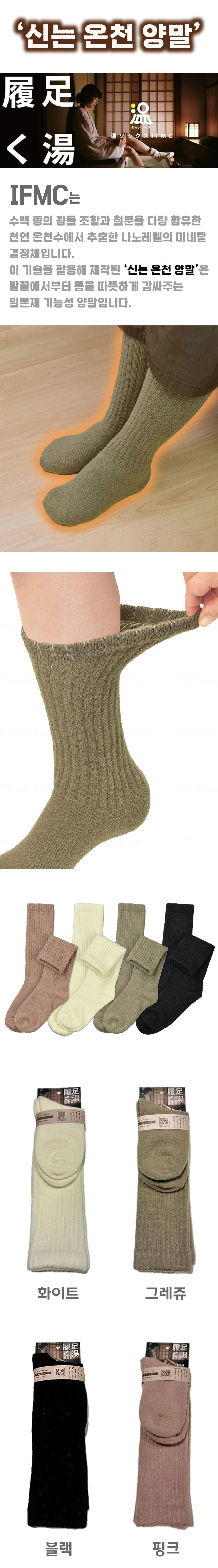 IFMC는 수백 종의 광물 조합과 철분을 다량 함유한 천연 온천수에서 추출한 나노레벨의 미네랄 결정체입니다. 이 기술을 활용해 제작된 ‘신는 온천 양말’은 발끝에서부터 몸을 따뜻하게 감싸주는 일본제 기능성 양말입니다.