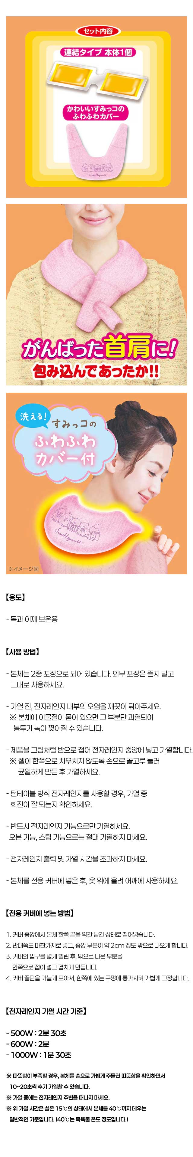 유탄포 유타폰 전자렌지용 목·어깨용 스밋코구라시 커버 포함 핫팩 따뜻함 약 30분 지속
