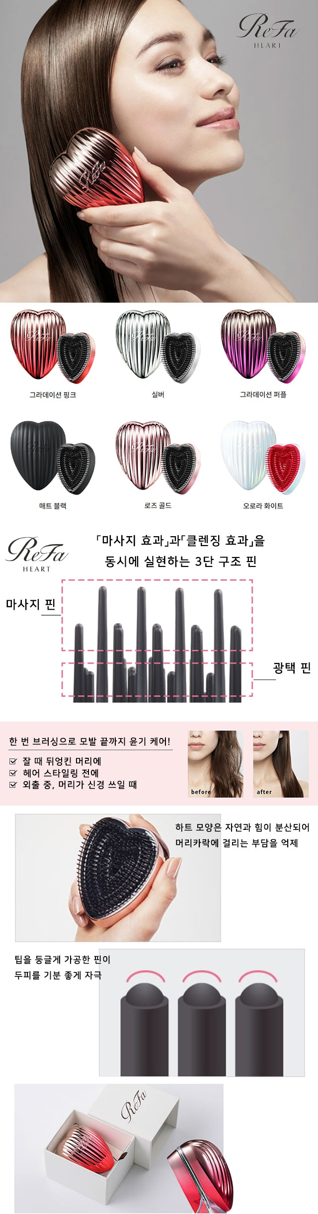 엉킨 머리를 부드럽게 풀고, 더욱 진한 윤기와 광채를 연출하는 리파의 업그레이드 버전 하트 브러시.
