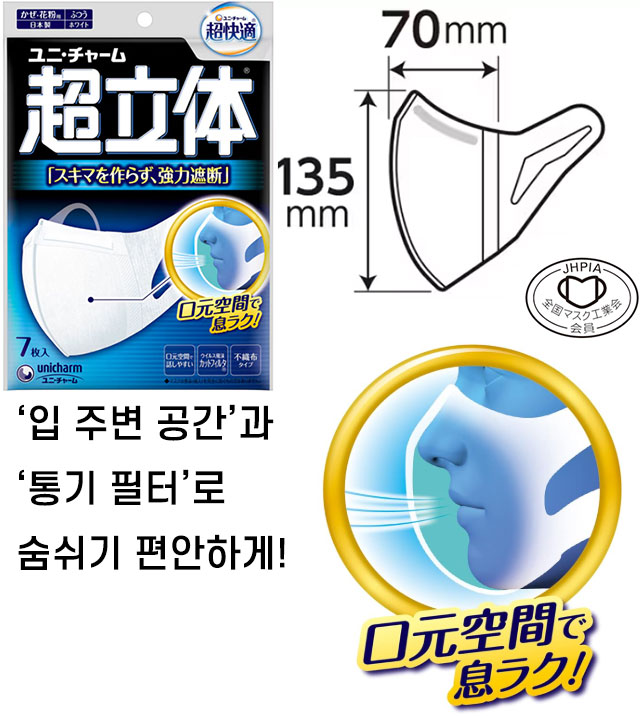 - home > 건강/의약품 > 마스크/생리대/위생 > 일본산 유니참 초쾌적 마스크 초입체 차단 타입 보통 7매입x10개 세트 (화이트 / 보통사이즈)