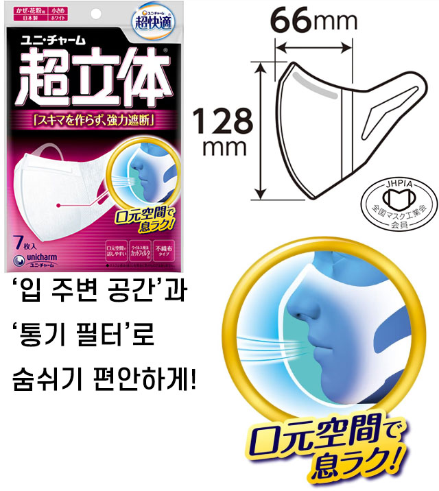 - home > 건강/의약품 > 마스크/생리대/위생 > 일본산 유니참 초쾌적 마스크 초입체 차단 타입 작은 7매입x10개 세트 (화이트 / 작은 사이즈)