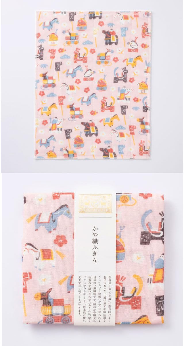 나라(奈良)의 전통 공예 가야오리 기법으로 만든 나카가와 마사시치 상점의 12 간지(午, 말) 행주입니다.