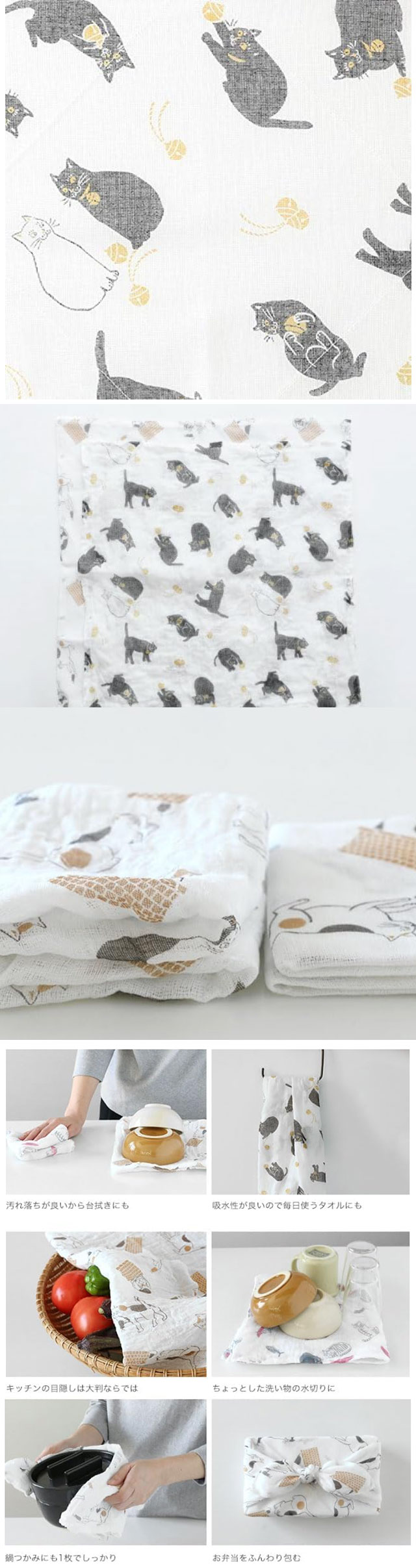 일본 고양이 속담을 귀여운 일러스트로 표현했으며 일반 행주의 약 4배 크기인 58×58cm 대형 사이즈로,