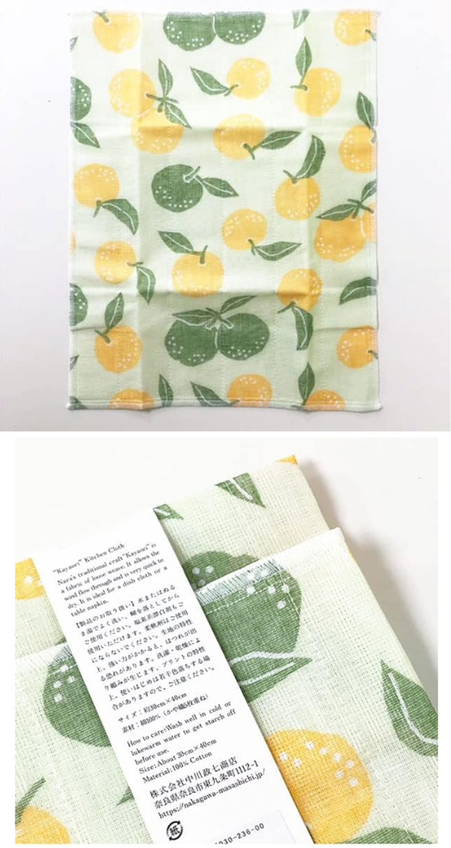 상큼한 산미와 향으로 다양한 요리에 포인트를 더하는 유자를 모티프로 한 가야오리 행주입니다. 사용할수록 부드러워지고 일상 주방 사용에 적합합니다.